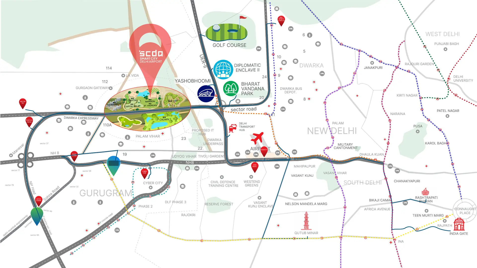 The project is located on the Dwarka Expressway, India's first grade-separated urban expressway and the new lifeline of the NCR, guaranteeing seamless, fast connectivity: